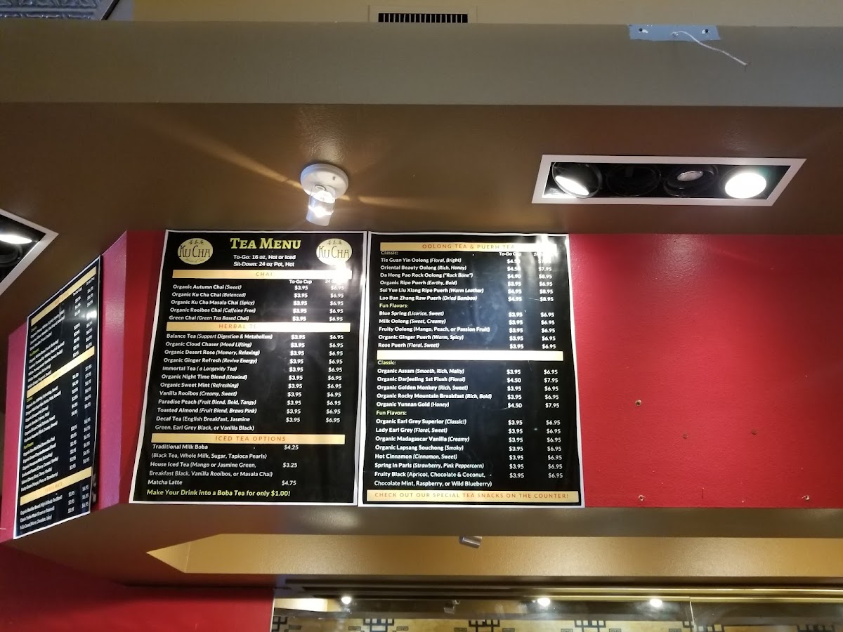 Ku Cha House of Tea offers an extensive selection of teas, with options spanning across several categories to suit diverse preferences. For green tea enthusiasts, they offer An Ji White Green Tea, Bancha Green Tea (Organic), and the fragrant Bi Luo Chun Green Tea (Organic). The white tea selection is equally enticing, with Bai Mu Dan White Tea Cake and the refreshing Madagascar Pomegranate White Tea. Oolong lovers can enjoy the rich flavors of Bai Ji Guan Rock Oolong Tea and Da Hong Pao Rock Oolong Tea. For those seeking black tea, the Aloha Blend Black Tea and the exquisite Black Dragon Pearl Black Tea stand out. The decaffeinated options include Decaf Apricot Black Tea and Decaf Earl Grey Black Tea, perfect for evening relaxation. If you're looking for something unique, their Yerba Mate teas like Chocolate Mate and Guayusa (Organic) provide a bold, energizing experience. Additionally, Ku Cha’s Puerh and dark teas, such as Bing Dao Raw Puerh and Golden Memory Puerh Tea, offer a more robust flavor profile. Their Chai selection, including Autumn Chai (Organic) and Firefly Chai (Organic), adds warmth and spice. The fruit tea offerings like Carnival Apple Tart Fruit Tea and Pink Pomegranate Fruit Tea bring a refreshing sweetness, while their herbal blends such as Balance Tea Herbal Blend (Organic) and CHA Relax Herbal Blend (Organic) are ideal for relaxation. Finally, for a unique twist, the Be Happy Tea Rooibos Blend (Organic) and other rooibos varieties offer a soothing, caffeine-free option. With such a wide range of flavors, Ku Cha House of Tea ensures there is something for every palate, whether you’re in the mood for something traditional or more adventurous.
